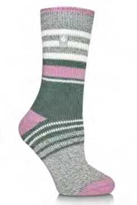 Heat Holders Women's Chloe Stripe Crew Sock Sage Green 5-9