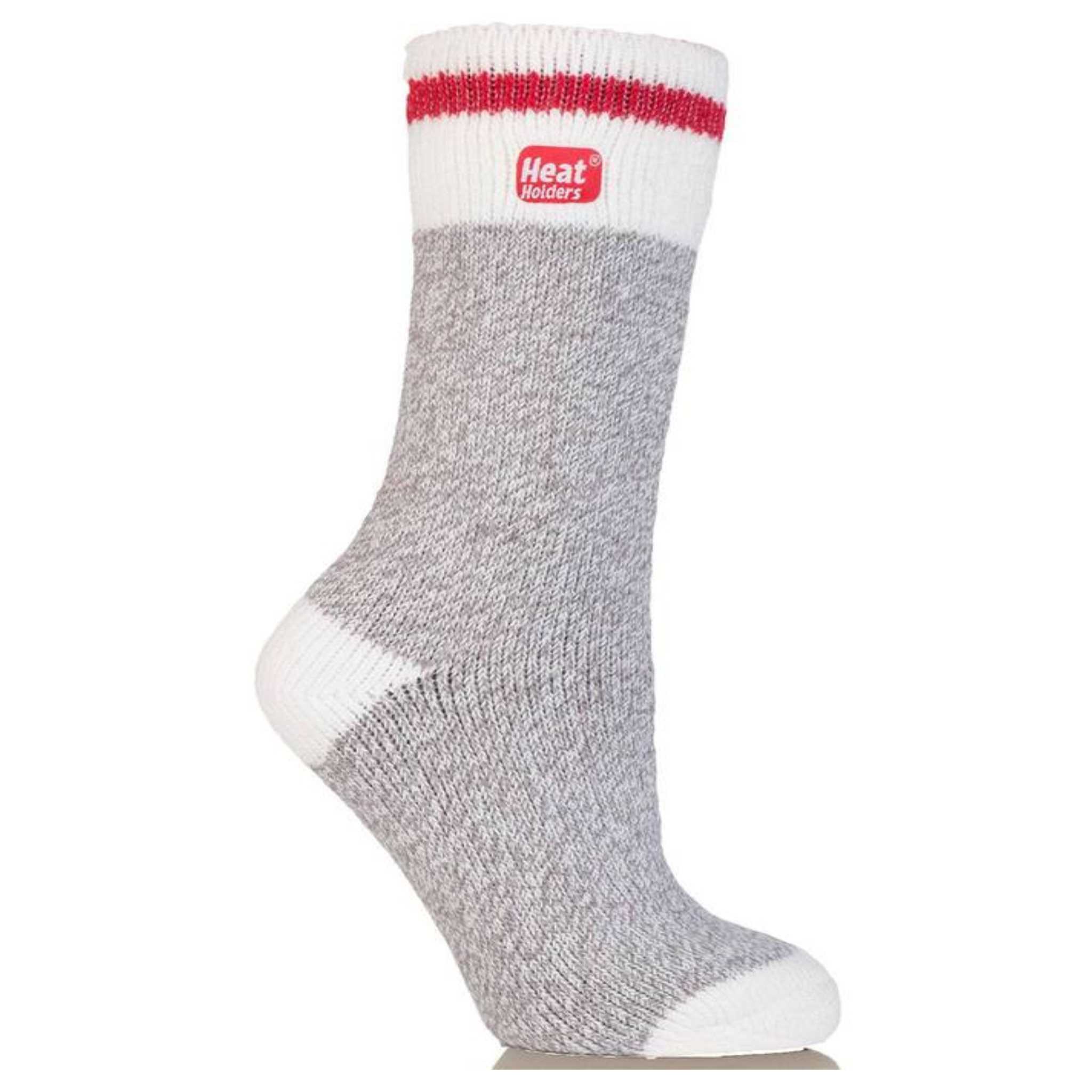 2018 - Ladies Heat Holders Cream Block Twist Crew Sock, 5 to 9, Grey