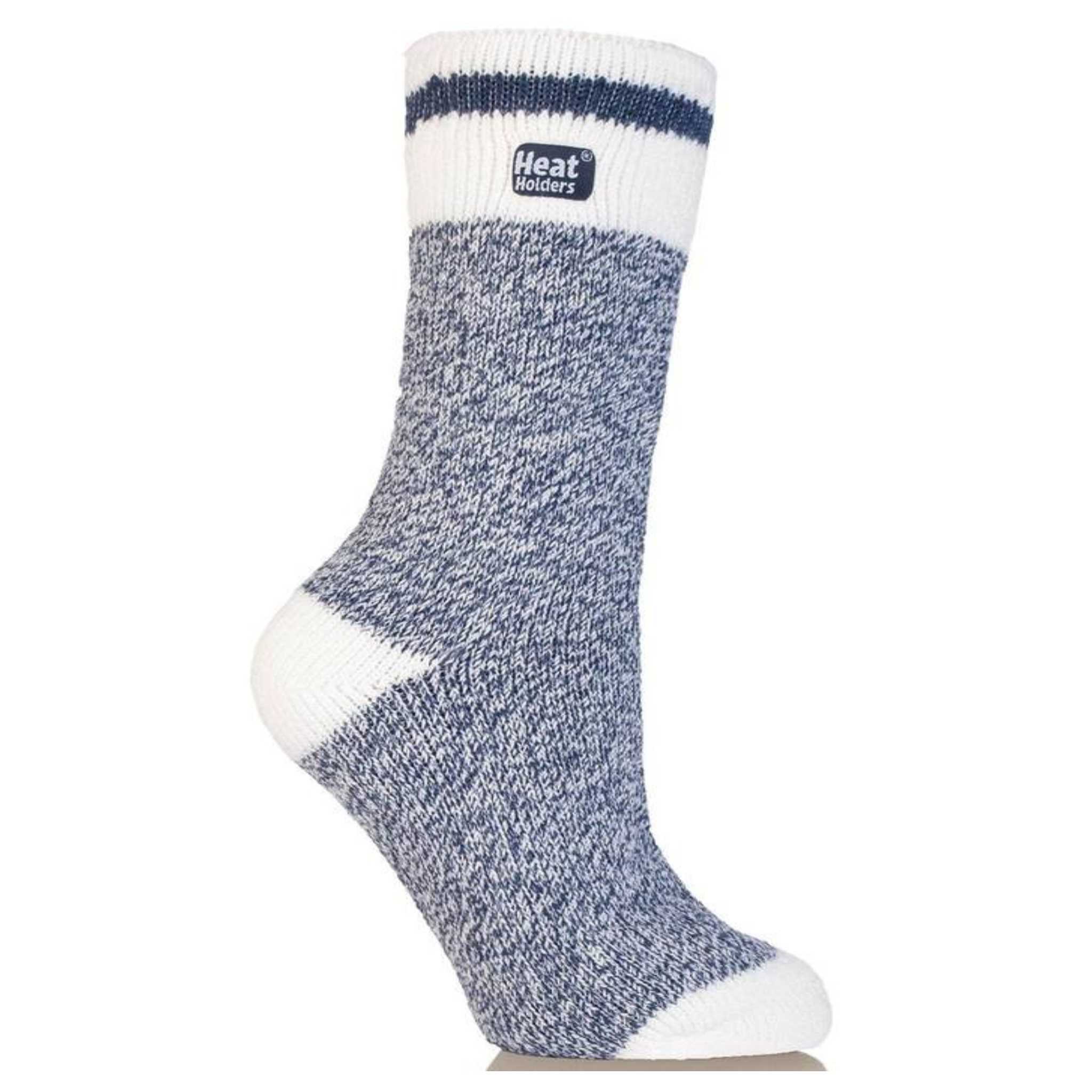 2018 - Ladies Heat Holders Cream Block Twist Crew Sock, 5 to 9, Navy