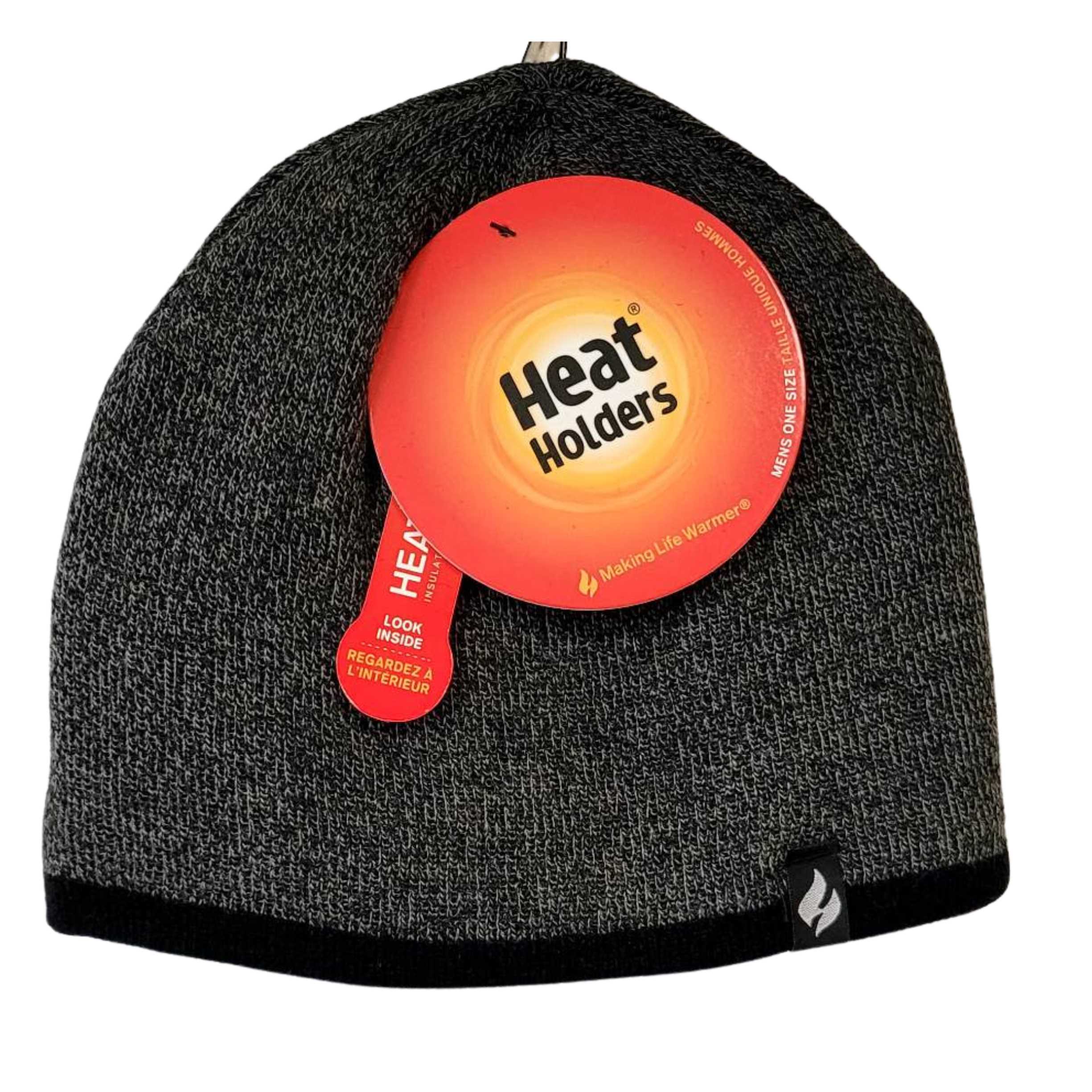2018 - Men's Heat Holders Flat Knit Hat w/ Contrast Trim, 1 Size, Charcoal Twist