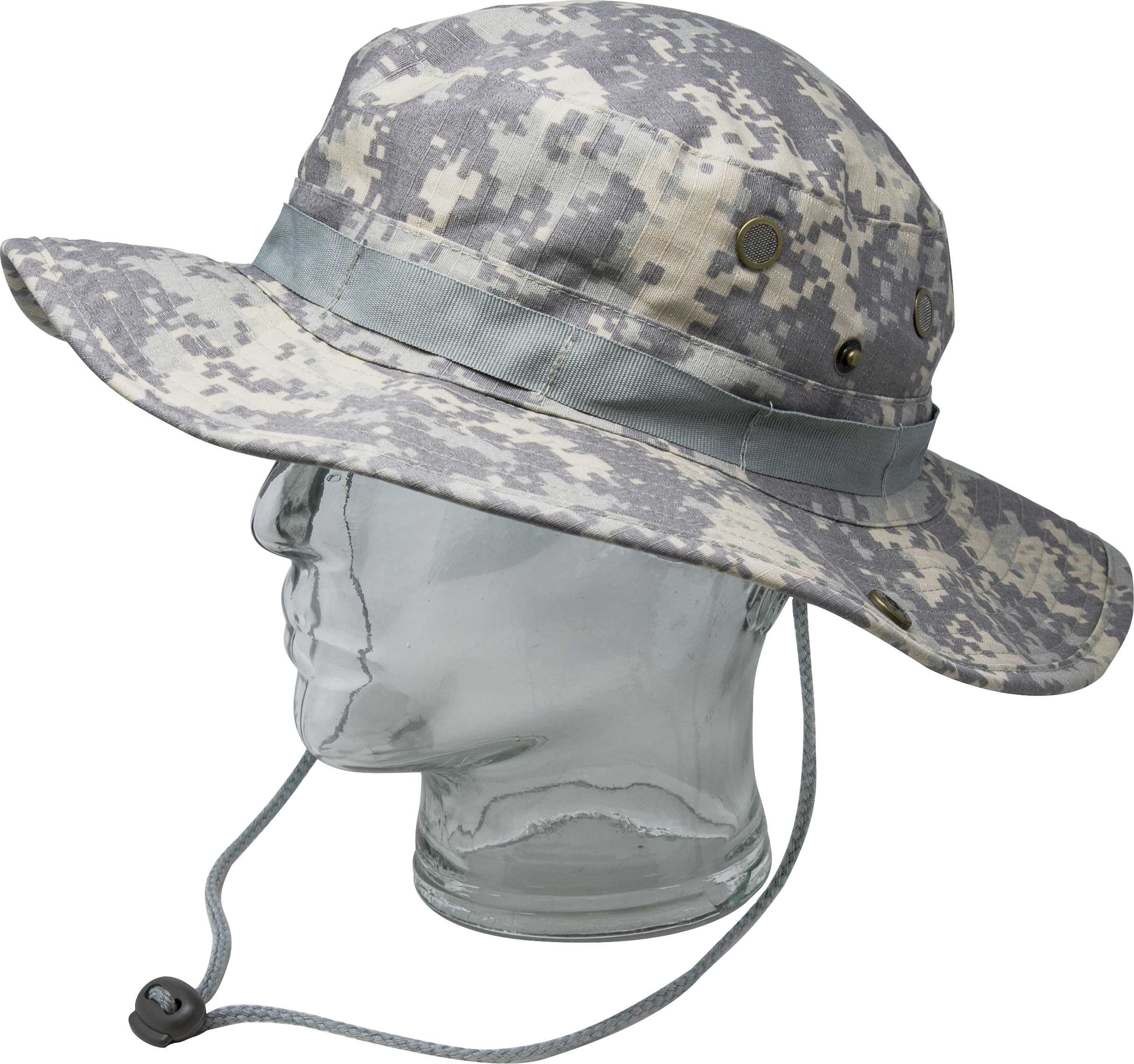 WF MIL-SPEX, Chapeau de pêche avec cordon, Large, Camo gris ACU Digital