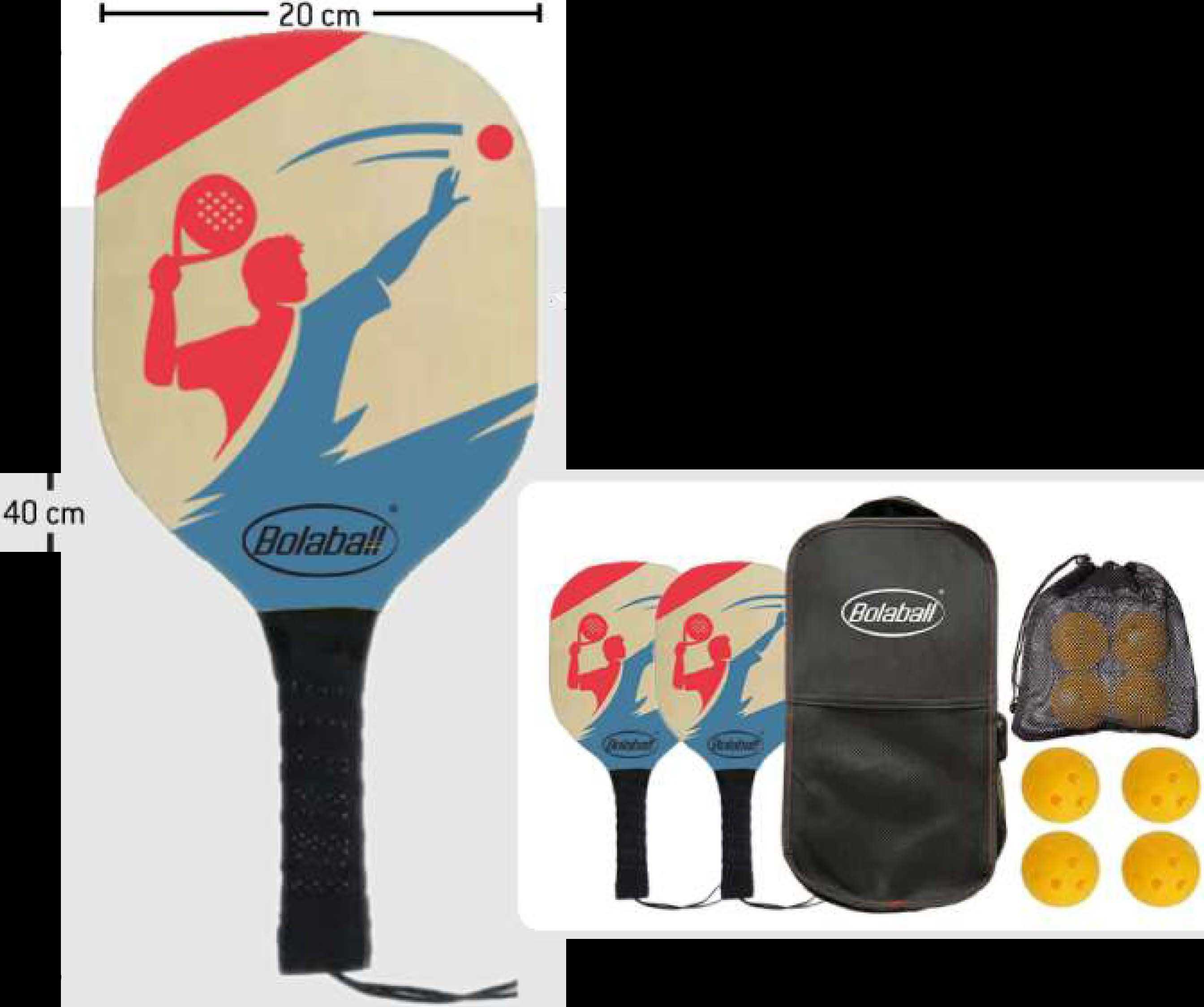 BOLABALL Jeux de Pickleball - 2 Raquettes, 4 balles avec Sac de Transport